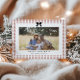 Festivo Crimson Red Stripe, Preppy Black Coquette Ribbon Arco, cartão de feriado de fotos.