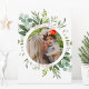 Este Natal de texto personalizado | cartão com fotos de férias pintado de aquarela eucalipto, folhas verdes e impressão de xadrez de inverno verde no verso. Mande alegria de férias para sua família e amigos.