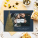 Com uma árvore moderna de faux gold flurries sobre um fundo azul-marinho-chic, este cartão com fotos é a maneira perfeita de enviar cartões de natal. A mensagem é personalizável, assim como a cor de fundo. Excelente para famílias, casais ou qualquer pessoa que tenha um gosto sofisticado.