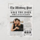 Prepare-se para anunciar o seu casamento com um cartão de jornal "Salvar a data" exclusivo! Saia com esse anúncio no jornal que certamente impressionará seus convidados. Ele contém todos os detalhes importantes em ambos os lados e permite que você adicione uma foto à frente. Esta modelo totalmente editável é uma opção de destaque para qualquer celebração de casamento.