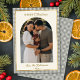 Cartão de Férias de Natal Feliz e Dourado, Foto do Arch da Xadrez Verde. Comemore a temporada em estilo com este elegante cartão de Natal com foto de xadrez, com uma empoeirada borda verde gingham e uma estrutura fotográfica moderna em forma de arco. Personalize-o com sua foto favorita da família, com textos de modelo "Feliz Natal", nome da família e o ano. O design festivo é destacado com a elegante tipografia de Feliz Feriados de Falso-Ouro, criando um olhar quente e eterno. O verso mostra um padrão de gingham verde de sábio correspondente para um acabamento coordenado e polido. Um cartão perfeito para compartilhar com a família e os amigos.