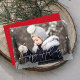 Compartilhe saudações calorosas com este cartão com fotos de Natal moderno que apresenta a sua imagem horizontal favorita, limitada por delicadas nevascas. "Felizes Feriados" é exibido em script de caligrafia branco-na moda com o nome da sua família mostrado abaixo. A parte de trás contém um fundo vermelho festivo com pontos de neve brancos, ou você pode personalizar a cor para corresponder ao seu estilo. Uma design simples e elegante para enviar alegria de férias.