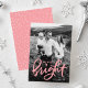 Dê um esclarecimento ao seu amado enviando nossa Feliz e cartão com fotos de feriado Bright. O cartão de feriado moderno mostra a sua foto vertical com sangramento de cheio com "Feliz + Brilho" em uma camada de script em negrito, com letras rosas claro. Personalize a frente do cartão de feriado bonito adicionando seu nome. A placa se reverte para apresentar um padrão simples de estrelas rosa e branca.
