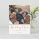 Este cartão de férias moderno tem lugar para uma foto e é escrito em um roteiro escrito à mão. Há bordas falsas de ouro e um padrão córrego no verso.