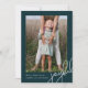 Cartão De Festividades Foto Elegante de Script Teal Joyful com Pontos Sim