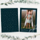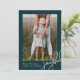 Este cartão de saudação de Natal de uma fotografia contemporânea apresenta uma elegante tipografia de escrita de caligrafia branca e uma fotografia num fundo azul-téal de tendência. Compre esta coleção de feriados moderna para obter cores de na moda adicionais e coordenar acessórios de correio.