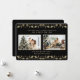 Cartão de feriado preto e dourado elegante com duas fotos adornadas com ouro, sagrado e bagas. Personalize facilmente este cartão de feriado fotográfico com as suas fotografias favoritas e o nome da família.