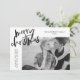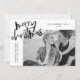 Envie alegria aos amigos e à família com um cartão de férias de Feliz simples de Late Bloom Paperie! O cartão de Natal moderno apresenta "Feliz Natal" num roteiro de pincel preto com letras de mão. Personalize a frente da placa adicionando sua foto, saudação personalizada, nome da família e ano. A placa reverte para exibir um padrão de faixa diagonal preto e branco.