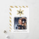 Um design de cartão festivo de feriado que apresenta um espaço para a sua foto favorita com um floco de neve glitter de ouro chico e uma redação do roteiro "Joy" de moda que aparece no topo. Personalize este design de fotos de feriado exclusivo com sua saudação de Natal personalizada e seu nome na parte inferior.