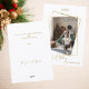 Um cartão de Natal moderno e elegante, com um falso quadro geométrico dourado. Personalize e adicione seu nome de família. Feliz feriado escrito com um script de estilo manchado de tendências. Voltar: adicione sua nota e seus nomes.