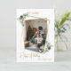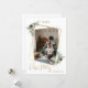 Um cartão de Natal moderno e elegante, com um falso quadro geométrico dourado. Decorado com pinheiro e cones. Personalize e adicione seu nome de família. Feliz feriado escrito com um script de estilo manchado de tendências.