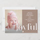 O doce cartão de Natal apresenta um tipo branco alegre em um fundo calmo neutro do que com uma simples mensagem de feriado de tipografia branca e foto na frente. A parte de trás apresenta um adorável impressão de cervo ilustrado e pinho em tons suaves.