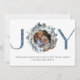 Alegre os amigos e a família com este lindo cartão de feriado "JOY", com uma excelente cor d'água azul rústica e uma coroa prateada contendo sua fotografia na letra "O". O resto das letras em damasco decorativo elegante de cinza azul e prateada com padrão de espiral. Há duas seções de texto para sua própria mensagem e nome(s). De volta no elegante padrão de espiral úmido no mesmo azul e cinza prata da letra na frente. Coleção com coordenação de produtos disponíveis.