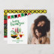 Esta fabulosa carta Kwanzaa com "Happy Kwanzaa!" em uma fonte moderna, em verde, um grupo Kinara, seus nomes e o ano em uma fonte de boné tradicional clara e nítida e uma linda foto de você, seus filhos ou sua família na frente e um padrão africano preto, vermelho, amarelo e verde coordenado na parte de trás é perfeito para enviar para toda sua família e amigos. Todo mundo vai adorar ter uma nova foto. Para tornar este cartão seu, basta selecionar Personalizar este modelo, carregar uma foto favorita e digitar seus nomes e o ano. É tão fácil!