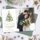 Cartões de natal de Natal de Árvore de Natal com Manuscrito de Caligrafia Elegante Moderno Manuscrito Aquarela Foto de Natal. Esta simples e festiva Cartões de natal de Natal minimalista apresenta uma foto, uma árvore de natal de aquarela com bolas de ouro decorativas e confete, um texto de saudação "Feliz Natal" que é escrito em um tipo de letra de coroa, com letras boas, com a mão, de um pente de haste em ouro e branco. Do lado oposto, neve brilhante do ouro ou confete de ouro espumante sobre fundo verde empoeirado. Estas Cartões de Natal Festivas e Personalizadas são uma forma excelente de lembrar aos entes queridos que vocês estão pensando nelas nesta temporada de Férias de inverno.