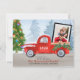 Deseje-lhes Feliz Natal com esta linda foto da família, cartão de Natal multifoto com um caminhão de natais vintages vermelho rústico transportando suas fotos da família "enquadrada" com um quadro preto na parte de trás do caminhão, e outras 6 fotos enquadradas na parte de trás! O cartão também apresenta uma cor d'água de árvores de inverno, um Natal decorado, seus próprios nomes familiares, saudações e Papai Noel ao volante. Fácil de personalizar com seus próprios nomes e fotos de família ou fotos de bebê. Este cartão tem, seguramente, muitos sorrisos, e é certamente um tipo de!