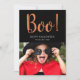 O cartão de Halloween apresenta "Boo!" em letra moderna manuscrita. Adicione sua foto e mensagem.