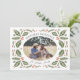 Este cartão de foto de Natal elegante e caprichoso apresenta nossa folhagem de inverno original desenhada à mão que enquadra sua foto com tipo curvo elegante. O verso apresenta um padrão correspondente com uma foto e um espaço para mais texto.