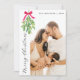 Design de cartão de Natal moderno e na moda, com uma fotografia favorita da sua família, o seu cartões de natal ‘Feliz Natal’ em escrituras elegantes, e o seu nome familiar em simples tipografia moderna. Há um lindo motivo botânico de aquarela de uma névoa pendurada no topo, ligeiramente sobrepondo o canto da foto. Carregue sua foto e personalize a parte traseira da placa com sua mensagem personalizada.