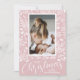 Amoras brancas, folhas e pontos sobre fundo cor-de-rosa empoeirado (ou qualquer cor que combine com a sua foto) destacam sua foto favorita com seus nomes e saudando em letras quentes na parte inferior. **ADICIONE mais fotos ou detalhes na parte traseira. Selecione Matte para o papel mais pesado e alta definição para melhor qualidade de impressão.