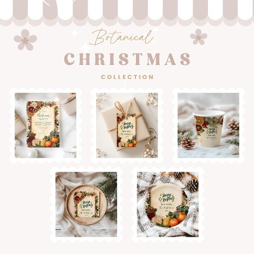Um design de Natal quente, rústico, com laranjas secas, frutas de inverno, rosas, pinheiros verdes e flores sazonais. Perfeito para enviar Cartões de natal confortáveis e tradicionais com um toque de fazenda antigo.