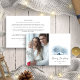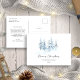 Natal Blue Winter Village Rustic Landscape One Photo Holiday Card. O cartão de férias com uma bela paisagem russa de inverno em cores azul e branca. Na moda e design elegante. Uma foto.