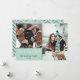 Este cartão de feriado moderno tem lugar para duas fotos e é escrito em um roteiro escrito à mão. Há bordas falsas de prata e um padrão de fevron nas costas.