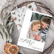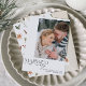 Apresentando nosso novo e espantoso Cartão de Feriado de Foto Simples Casado e Feliz Newlyweds: um design moderno com tipografia elegante e uma querida foto de casamento, em preto e branco clássico. A frente minimalista é complementada por um padrão botânico quente e festivo de aquarela no dorso, mostrando verde de pinheiro, eucalipto, cones de pínus, canela e bagas. Perfeito por celebrar seus momentos especiais com um toque de charme de feriado. Entre em contato com o designer para produtos correspondentes. Copyright Anastasia Surridge, todos os direitos reservados.
