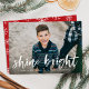Deseje aos amigos e à família uma feliz temporada de férias com a nossa moda e o moderno cartão de cartões de natal Shine Bright. O cartão de feriado bonito exibe sua foto na frente com "Brilho Brilhante" em uma camada branca de script de pincel pintada com uma breve saudação e seu nome abaixo. A parte traseira da placa apresenta um padrão vermelho e branco do floco de neve.
