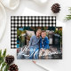 Compartilhe a alegria do Natal com este design de feriado totalmente fotográfico, apresentando um elegante letreiro branco “Feliz Natal” na parte inferior e espaço abaixo para o nome da sua família e ano. Um padrão xadrez preto e branco na parte de trás adiciona um estilo aconchegante de fazenda, tornando-o uma escolha festiva para famílias que amam fotos clássicas e quentes de Natal.