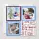 Adorável Snowman e os seus amigos animais da floresta decoram uma árvore de Natal numa floresta de neve. Um veado, coruja, coelho, ouriço e pássaro cardeal vermelho ajudam a celebrar o feriado. Texto tipográfico arte transmite muito do que nos dá alegria nesta estação. Duas fotografias familiares podem ser personalizadas junto com a sua mensagem pessoal no verso. Deem um cartão que será precioso como um guardião para sempre! Criada por artista e designer internacionalmente licenciado, Audrey Jeanne Roberts ©.