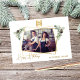 Celebre a época em estilo com este cartão de Natal moderno e elegante, com um quadro fotográfico geométrico em ouro falso adado com galhos e cones festivos. A frente mostra uma saudação de "Felizes Feriados", escrita por chic, perfeita para transmitir desejos calorosos. Personalize a placa com o logotipo da sua empresa, a foto e o nome dela para criar um toque profissional. A parte traseira oferece a opção de incluir uma mensagem personalizada ou deixá-la vazio para uma conclusão limpa. Ideal para enviar torcida de férias a clientes, parceiros e funcionários