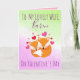 Aprecie a sua esposa este dia de Namorados com um cartão maravilhosamente personalizado do Zazzle. O design apresenta um impressionante fundo de aquarela verde e rosa, definindo a cena para duas raposas abraçadas num abraço amoroso — o símbolo perfeito do seu romance. No topo da carta, as palavras sinceras "To My Lovely Wife" são apresentadas de forma elegante, seguidas do nome da sua esposa em caracteres sobressalentes. Completando o design, a frase "No dia do Namorados" é escrita no fundo, ligando o cartão ao amor e ao calor. Torne este Dia do Namorados inesquecível — peça seu cartão personalizado hoje! Trabalho de arte do Cobrir Fox criado por: Prettygrafik design (https://www.etsy.com/shop/Prettygrafikdesign) Coração traseira: AMBilustrações http://www.etsy.com/shop/AMBillustrations/