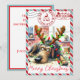 Customized Funny Christmas Card with a Grumpy Dog Tangled in Holiday Lights