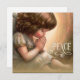 Bonita, pequena, cabelinha castanha, pintura de anjo rezando com bochechas rosadas, vestida de vestido branco e um halo luminoso radiante, e uma mensagem rezante de Paz. A tipografia da paz tem rodopia e rolagem.