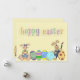 Este cartão branco apresenta um coelho de menino e menina que tem pintado muitos ovos coloridos de Páscoa. Ele diz "páscoa salgada" em uma tipografia multicolorido e biselada, e é colocado contra um amarelo pálido com fundo de bolinhas branco. O verso da placa tem uma cesta de Páscoa no canto e há um lugar para você personalizar a placa com seu próprio ditado. Se quiser escrever seu cartão à mão, basta apagar o texto no verso.