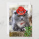 Cartão de cartões de natal de Natal plano, com uma cinza de gato-do-mato-escocês, com chapéu vermelho, buquê de catinete e flocos de neve. Feliz Natal e Puro Ano Novo. Arte, imagem e direitos de autor versos © Shoaff Ballanger Studios, 2022.