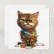 Mostrando um determinado gato de mesa no meio do caos de férias, envolto em luzes brilhantes e coloridas. Um cartão para qualquer um que já se sentiu esmagado durante a temporada!