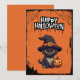 Cartão De Festividades Gato Preto Com Jack O' Lantern de Abóbora