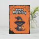 Celebre a temporada assustadora com charme! Este cartão de feriado adorável apresenta um gato preto fofo sentado ao lado de um jack-o'-lantern de abóbora brilhante em um fundo laranja festivo. Perfeito para saudações de Halloween, convites de festa ou apenas para enviar um sorriso. Ideal para amantes de gatos, entusiastas do outono e fãs de arte de feriado divertida. 🎃🖤