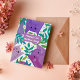 Ilustração roxa e verde com gatos e folhagem. Feliz dia de as mães para mães de gatos. Feliz dia da mãe de gato!