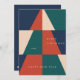 Formas geométricas ousadas em vermelhos, verdes e cremes vibrantes se unem nesta saudação abstrata de Feliz Natal. O design simples e preciso traz um toque contemporâneo ao espírito natalino.