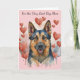Este cartão giro para a "Bulldog" francesa, mãe ou Pai, faz um cartão de Dia de os namorados, mas também pode ser usado para um aniversário ou qualquer outra ocasião especial. Todo o texto é facilmente alterado para qualquer coisa que você gostaria. A frente tem uma imagem de aquarela de um Cachorro German shepherd, com corações vermelhos flutuando ao seu redor. O dentro diz atualmente "Você faz minha cauda WAG".