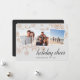 Cartão com fotos elegante e festivo apresenta três fotos quadradas em uma colagem, com uma espiral de falso falso falso floco de neve de folha rosa de ouro sobre fundo de cinza pastel. O termo "Holiday Cheer" aparece na parte inferior em letras brancas de escrita de caligrafia, com os seus nomes ou nome de família e o ano abaixo. Personalize a parte traseira com uma foto adicional e uma mensagem pessoal, se desejar.