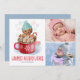 Enquanto isso, o Cartões de foto de Natal "Desejos mais quentes" apresenta um biscoito de gengibre de aquarela fofo em um tricô de inverno que desfruta de um banho numa caneca de cacau quente com uma cana doce e marshmallow e sotaques de neve pastel. Personalize com suas próprias fotos. Trabalho de arte por KL Stock.