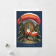 Ilustração original do Gnomo de Becky Nimoy; um gnomo em frente a sua casa de cogumelos com árvores decoradas de natal com falso brilho. A cor de fundo da placa é editável. Use a área de mensagem no verso ou desmarque para adicionar sua própria foto.