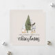 Design de Natal com um toque escandinavo. Um simples cartão de natal ao estilo nórdico, com um gnomo bonito e um alce. No verso você pode personalizar o texto de acordo com suas necessidades.