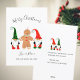 Gnomos bonitos, gengibre, árvore de Natal, cartão de Natal feliz. Bauble de aquarela, pinheiro, cartão tradicional. Por favor, personalize-o com os seus detalhes.