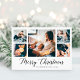 Este cartão de cartões de natal da família simples, clássico, preto e branco apresenta uma tipografia moderna e elegante de roteiro que diz "Feliz Natal", com uma grelha multifotografia de cinco fotografias na frente e mais uma no verso.