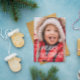 Cartão de Natal de foto de lado duplo com a sua foto cobrindo todo o cartão, um de cada lado. Na frente, Feliz Natal está escrito em um grande roteiro de pincel na parte inferior de sua foto. Personalize com seu(s) nome(s)!